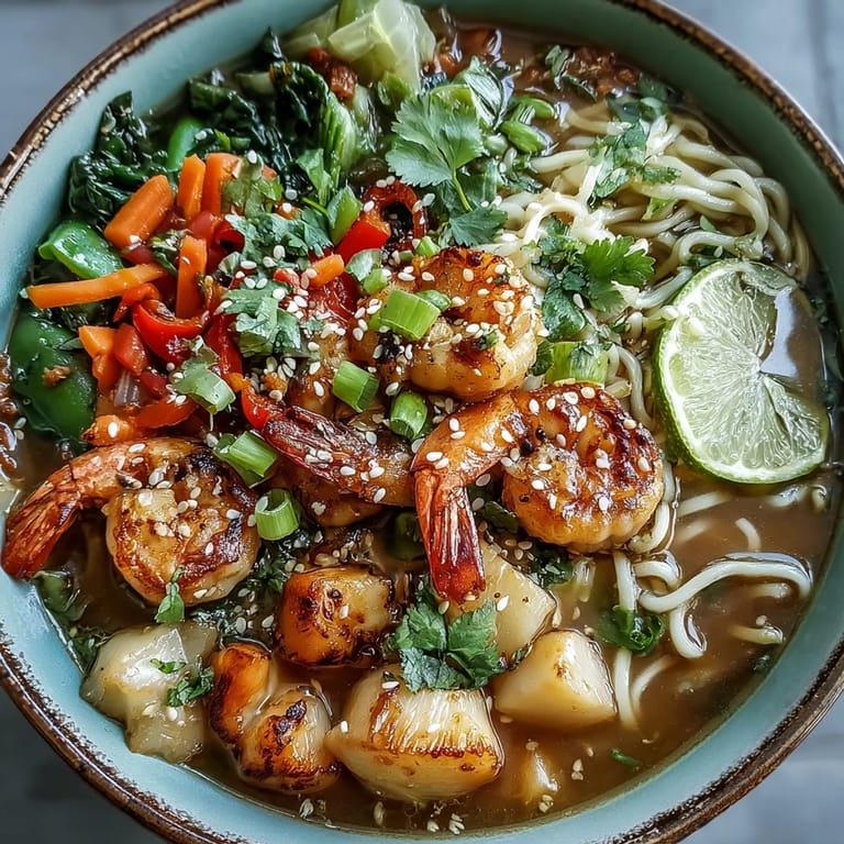 Pin It There's something magical about the moment when hot broth meets cold noodles and you watch everything come together in a single bowl. I stumbled onto this noodle bowl during a rainy Tuesday when I had shrimp and scallops that needed cooking, and the result was so good my roommate asked for seconds before I'd even sat down. The combination of tender seafood, crisp vegetables, and silky noodles swimming in a deeply flavored broth became my go-to when I wanted something that felt restaurant-quality but didn't require a reservation.