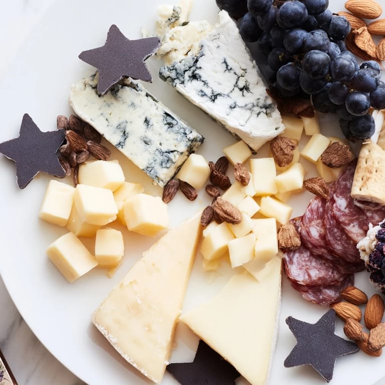 Use a large wooden or slate serving board to enhance the natural and rustic aesthetic of the Celestial Night Board. Ensure cheeses are at room temperature before assembling to maximize flavor. Play with placement inspired by the night sky—aim to create a balance of color and texture that invites tasting from every angle.