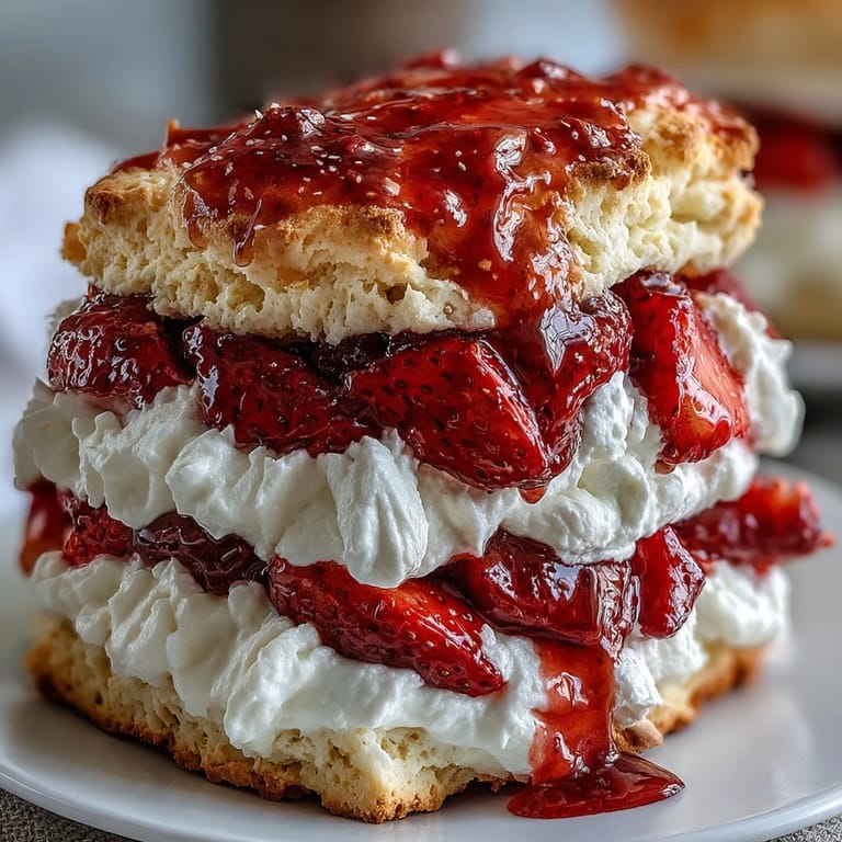 Pin It My neighbor baked these strawberry shortcakes one June afternoon, and the smell drifting through the screen door was so insistent that I had to ask for the recipe. What struck me most wasn't just the taste, but how the warm biscuits softened ever so slightly when they met the juicy strawberries, creating this perfect textural moment between crisp and tender. Since then, I've made them for almost every summer gathering, and there's something about assembling them by hand that turns dessert into ceremony.