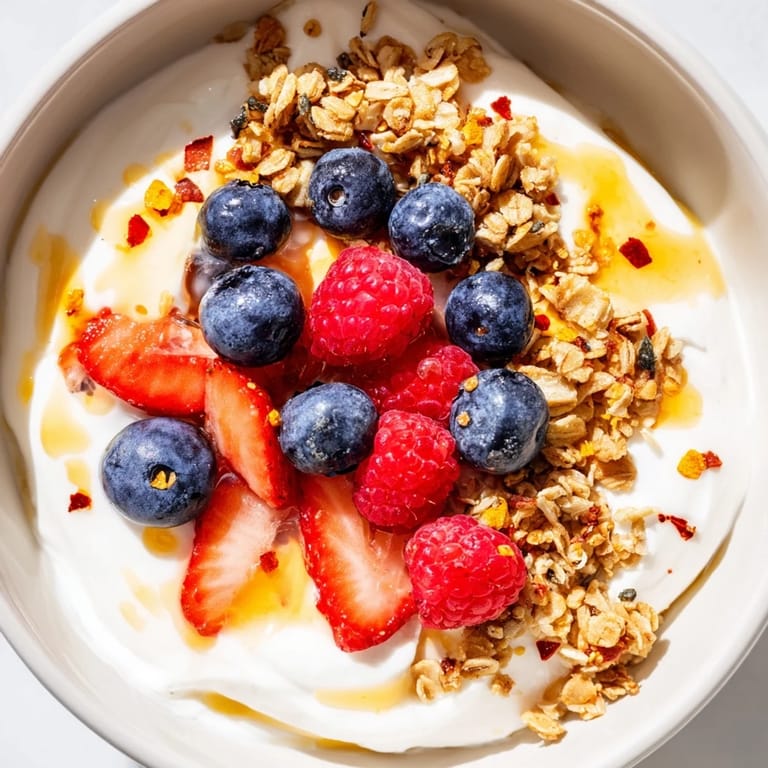 Pin It I stumbled onto this bowl on a Tuesday morning when I had nothing but cottage cheese, a handful of berries getting soft in the fridge, and a jar of hot honey a friend had gifted me. I threw it all together out of desperation, expecting something forgettable, but that first spoonful—the cool creaminess meeting the warm spicy-sweet drizzle—completely changed how I think about breakfast. Now it's become my go-to when I want something that feels indulgent but takes less time than making toast.