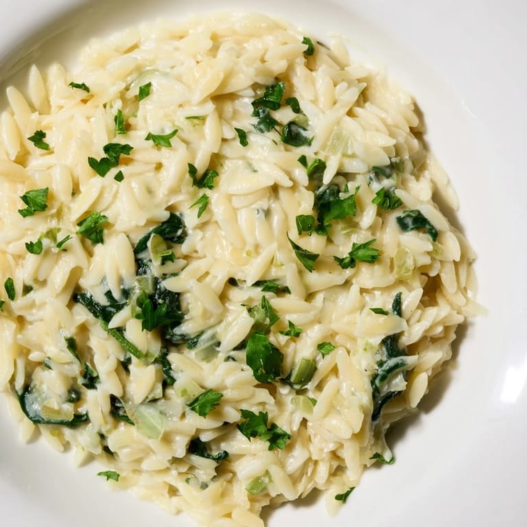 My neighbor once showed up unexpectedly with her kids around dinnertime, and I made this in front of them while they sat at the counter, watching the orzo transform from something dry and separate into this silky, cohesive dish. The kids went quiet, which never happens, and I realized it wasn't fancy or complicated—it was just genuinely good, the kind of thing that makes people feel looked after.