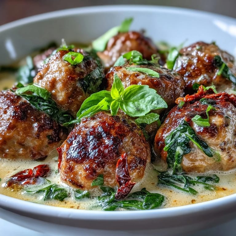 This soup works because each component has a purpose—the sun-dried tomatoes add tang, the spinach adds earthiness, the Parmesan adds salt and umami depth. You can play with it once you understand the balance: swap kale for spinach if you prefer something heartier, use half-and-half instead of heavy cream for a lighter version, or add a pinch of fennel seeds to the meatballs for something more obviously Italian. The structure stays the same; the variations are yours to explore.