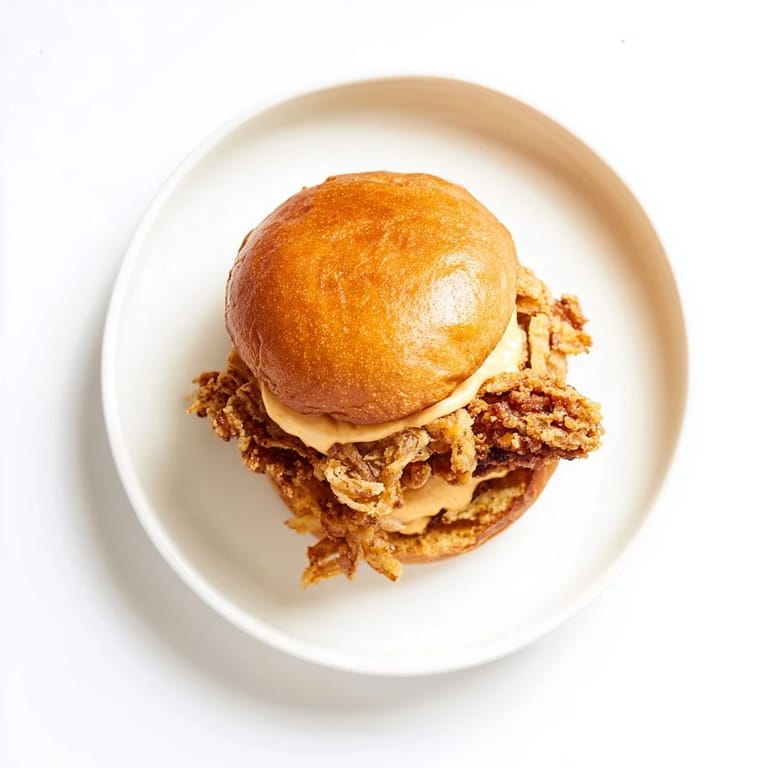 Pin It My brother walked into my kitchen one Saturday afternoon and announced he'd pay me twenty bucks to recreate that sandwich he'd had at some food truck downtown. I laughed, but then he described it: fried chicken, a pile of crispy onions, garlicky mayo, soft bun. I didn't need the money, but I needed the challenge. An hour later, oil was shimmering in my skillet, and he was already hovering near the stove like a loyal dog.