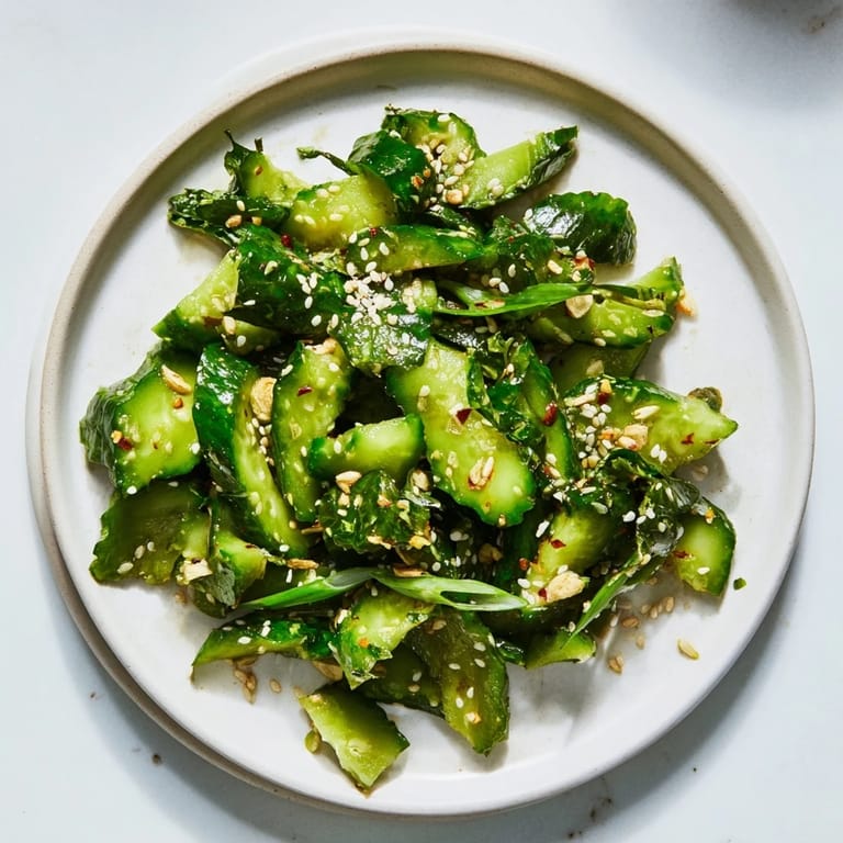 Pin It I threw this together on a sweaty August night when the idea of turning on the stove felt impossible. A friend had sent me a video of someone shaking cucumbers in a jar with MSG, and I was skeptical until I tasted it. The cucumbers were cold, crunchy, and hit every note at once—salty, sweet, sharp, and deeply savory. I've made it at least once a week since, sometimes standing at the counter eating it straight from the bowl.
