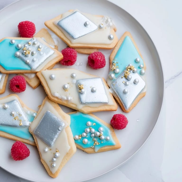 - Arrange cookies on a decorative platter. Drizzle some with melted white chocolate and sprinkle with edible silver pearls or gold leaf. Garnish tray with candied petals and fresh berries for added elegance and color.