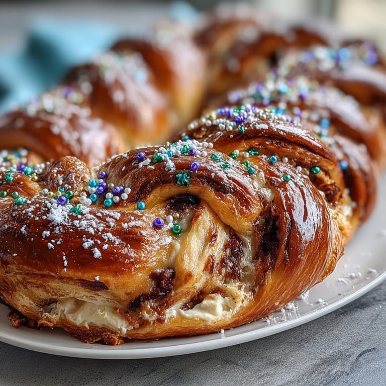 Pin It The year I actually attempted a King Cake, I was standing in my kitchen at 6 a.m. on Fat Tuesday, second-guessing myself while my hands were already dusted with flour. My neighbor had casually mentioned hers always looked like a beautiful golden braid, and something about that image stuck with me through the winter. This version with the tart lemon filling came together almost by accident—I had cream cheese and lemons on hand, and the combination felt right the moment I tasted it.