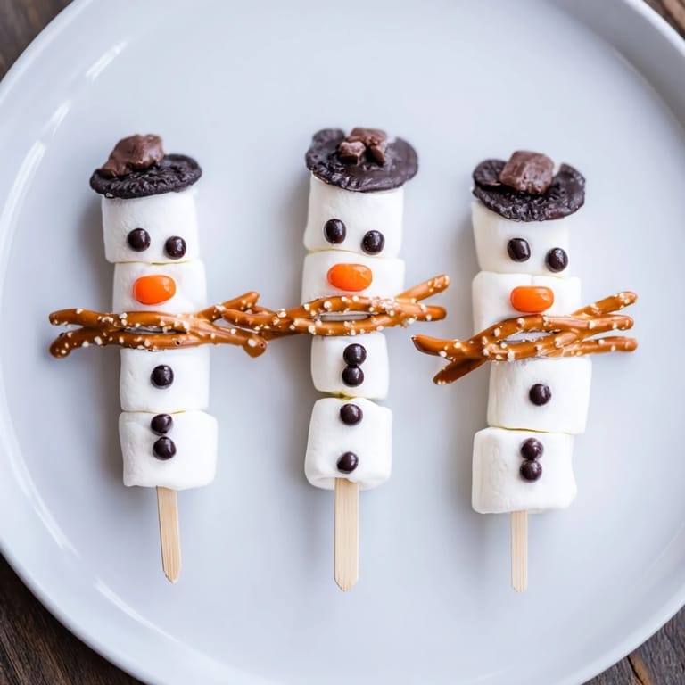 Pin It A whimsical and delightful no-bake treat featuring marshmallow snowmen on sticks—perfect for kids parties, holiday gatherings, or as a creative winter snack.