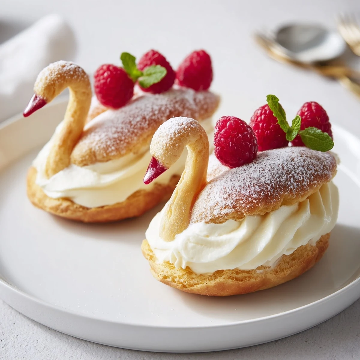 For a chocolate variation, drizzle the assembled swans with melted dark chocolate. You can also swap the fresh berries with seasonal fruits or add a touch of liqueur to the Chantilly cream for an adult twist.