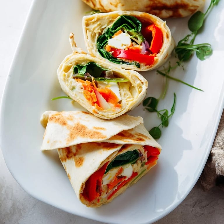 Pin It A vibrant, nutritious wrap featuring creamy hummus and beautifully roasted vegetables, folded into a clever, mess-free snowflake wrap for a satisfying lunch or dinner.
