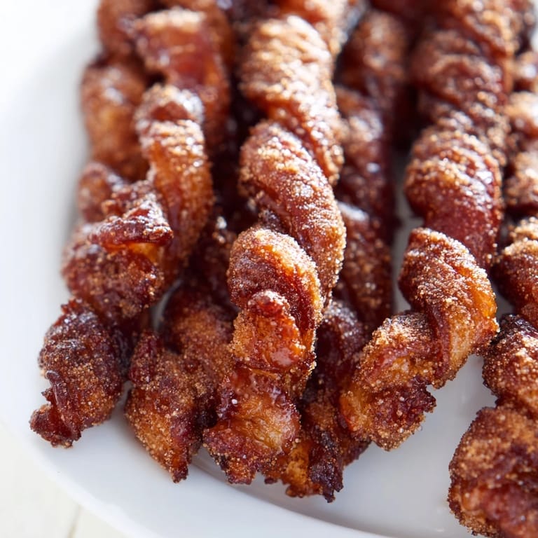Pin It The smell of brown sugar caramelizing in the oven has this way of stopping everyone in their tracks and pulling them toward the kitchen. My sister discovered this recipe during a chaotic holiday brunch prep when we needed something impressive but dead simple. We laid out these twisted strips of bacon, dusted with cinnamon and just enough heat to keep things interesting, and watched them transform into sticky, candied ribbons of perfection. Now they are the first thing requested at every gathering, and honestly, they disappear faster than we can bake them.