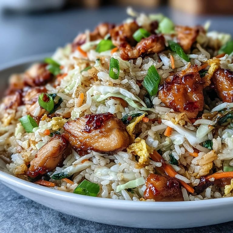 Pin It My neighbor knocked on the door one Tuesday evening with a container of leftover egg roll filling, asking if I could turn it into something dinner-worthy since she'd made too much. That night, I tossed it into hot rice with chicken and realized I'd accidentally created something better than the original—crispy, savory, and ready in the time it took to pour a drink. It became the dish I now make whenever I need something that feels intentional but comes together without stress.
